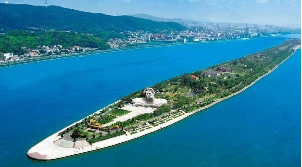 面積最大的沙洲,被譽(yù)為“中國(guó)第一洲”,有毛澤東青年藝術(shù)雕塑、問(wèn)天臺(tái)等景點(diǎn)。