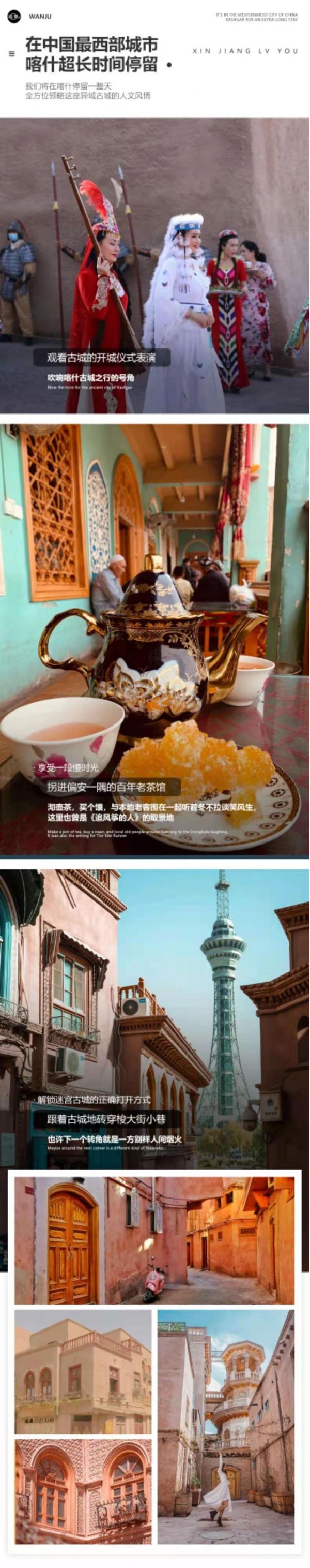 今天我們將去到中國最西部的城市—【喀什】,用整整一天的時(shí)間去領(lǐng)略這個(gè)“你未曾前往,但始終向往”的城市魅力。來喀什必須要逛逛【喀什古城】,喀什老城每天有兩個(gè)開城儀式表演,時(shí)間分別是:早晨10:30 下午18:00,向來自五湖四海的朋友們展示自己熱情的好客之道。之后我們進(jìn)入古城漫步在古城的街道,老城區(qū)街巷縱橫交錯(cuò),布局靈活多變,曲徑通幽,民居大多為土木、磚木結(jié)構(gòu),不少傳統(tǒng)民居已有上百年的歷史,是中國以伊斯蘭文化為特色的迷宮式城市街區(qū)。這里巷道狹窄彎曲,奇特的過街樓、小胡同、手工作坊隨處可見,生土建筑比比皆是,被中外游客譽(yù)為“維吾爾族活的民俗博物館”,是喀什這座中國歷史文化名城的內(nèi)涵所在。
