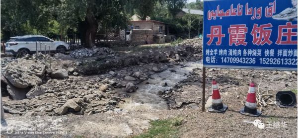 現(xiàn)在已經(jīng)2:30了,大家還沒有吃飯,整個路上,人家也很少,幾乎沒有看到任何村莊,路邊現(xiàn)在有一個丹霞飯店,沒辦法,在這吃飯吧,這一塊植被應(yīng)該說還不錯,雖然極簡,小橋流水倒有點(diǎn)情調(diào)。