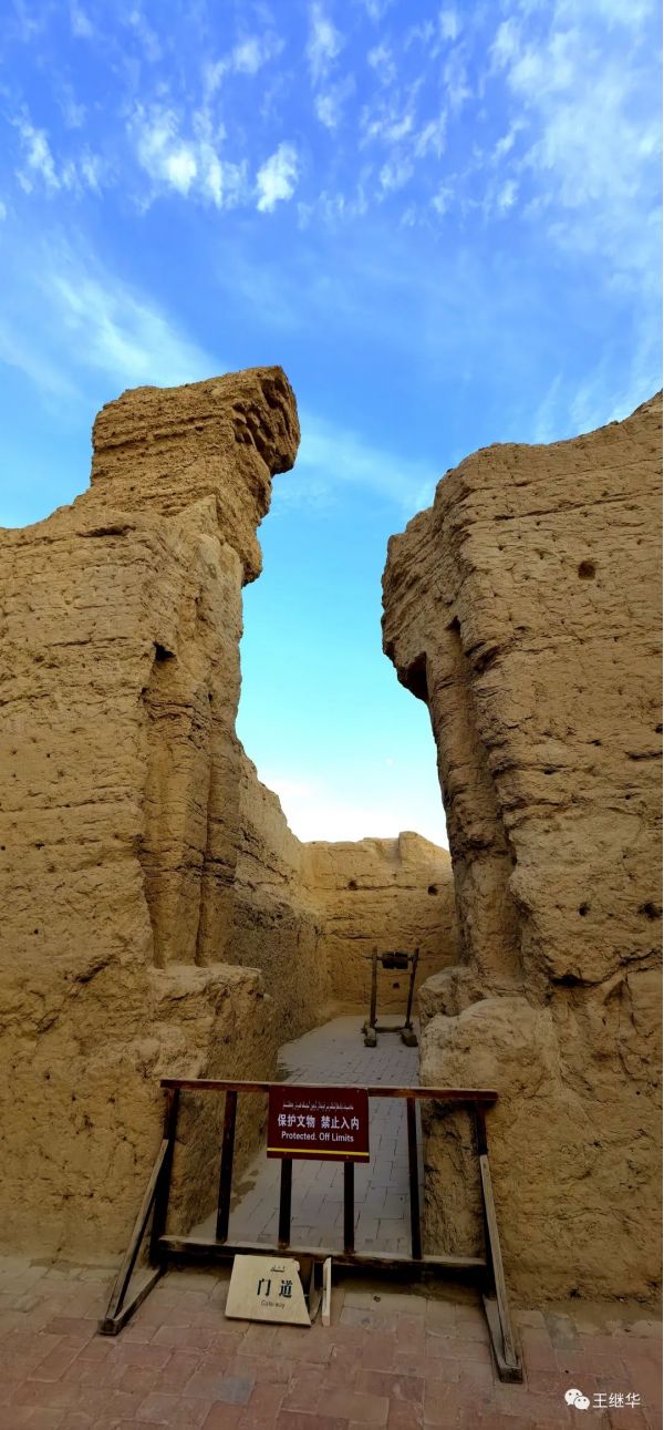 小楊說交河故城,建筑形式就是從地面上向下挖,就像我們看到的工藝品透雕一樣,把土挖出來,留出房子的四堵墻。再架上房梁蓋上房頂,然后挖出街道。一個地面下的城市就完成了。到了漢末,有了改進,把挖出的土蓋成了第二層的墻,這樣故城的建筑就有了兩層。故城有里面,有衙署,倉庫,居民區(qū)和多處寺院,當年居住人口達到6000多人。比后來的高昌故城的30000人少很多。小楊邊走邊娓娓道來,如數(shù)家珍,顯示出了學歷史歷的功底。