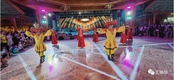 出來景區(qū)已經(jīng)天黑了。我們繼續(xù)前行準備住吐魯番市。司機兼導游的馬曉飛是回族,他說今天是古爾邦節(jié),也就是回民的小年,中午吃飯的時候大家都敬了他一杯酒祝福節(jié)日快樂。喝到高興處,他不由自主的跳了一段少數(shù)民族舞蹈。