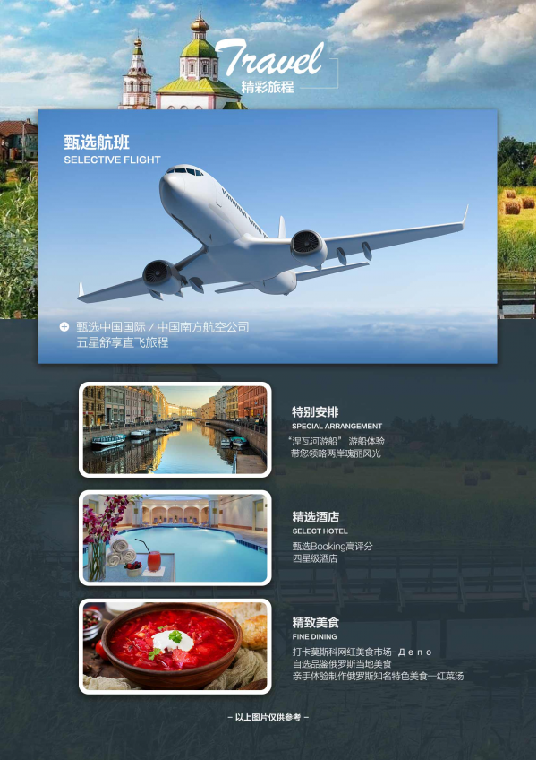 今日機場集合,美好的旅程即將實現(xiàn),甜美的夢境,引領你走向古典主義的夢幻俄羅斯。