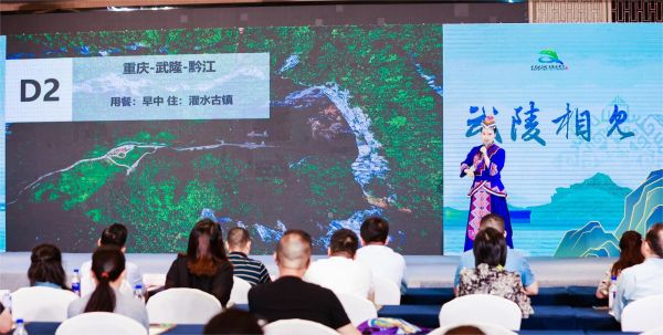 活動(dòng)現(xiàn)場,土家幺妹廖珊以“峽谷福緣·武陵相見”為主題,全方位推介了黔江豐富的自然資源和民俗文化,以及“山水韻”“峽谷城”“武陵風(fēng)”等特色文旅產(chǎn)品和精品旅游線路,帶領(lǐng)與會(huì)嘉賓“云游”黔江。