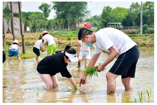 此時(shí)的長(zhǎng)安唐村,不少家長(zhǎng)帶著孩子,挽起褲腿踩進(jìn)泥土中,在園區(qū)工作人員的帶領(lǐng)下,親手栽種下一棵棵秧苗,參與作物的自然成長(zhǎng)。“很多游客都很珍惜插苗體驗(yàn)的親子時(shí)光,對(duì)他們來(lái)說這種與自然親密接觸的機(jī)會(huì)很珍貴。”園區(qū)一名工作人員說。