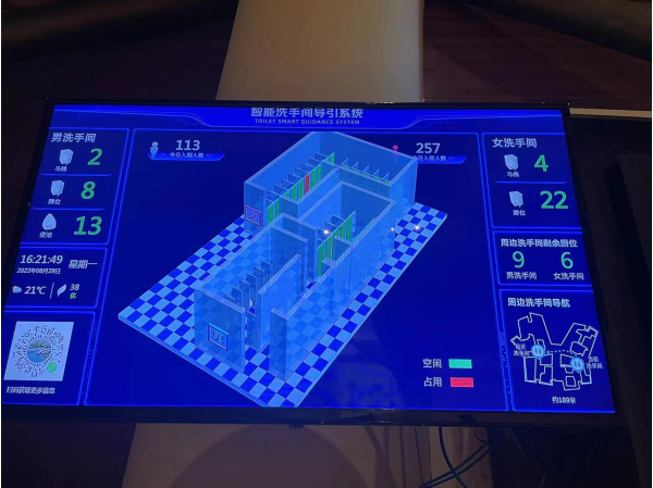國(guó)家海洋博物館智慧化廁所智能顯示屏,可以讓觀眾實(shí)時(shí)了解廁所使用情況。