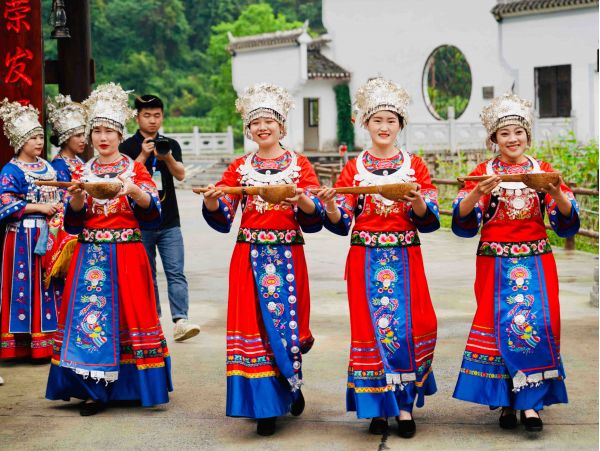鑼鼓陣陣,舞獅相迎。在距離吉首市區(qū)20余公里的矮寨鎮(zhèn)中黃村,一道“攔門酒”,表達了苗家人對貴客的祝福。