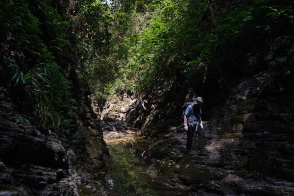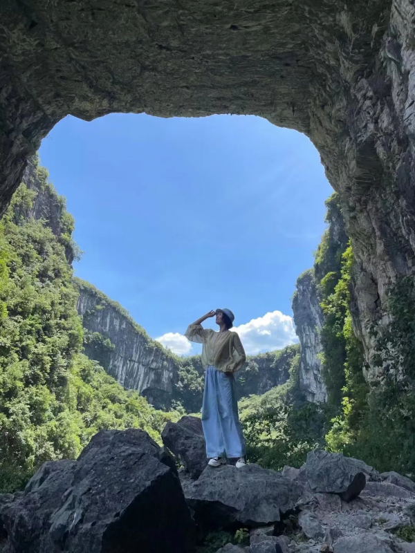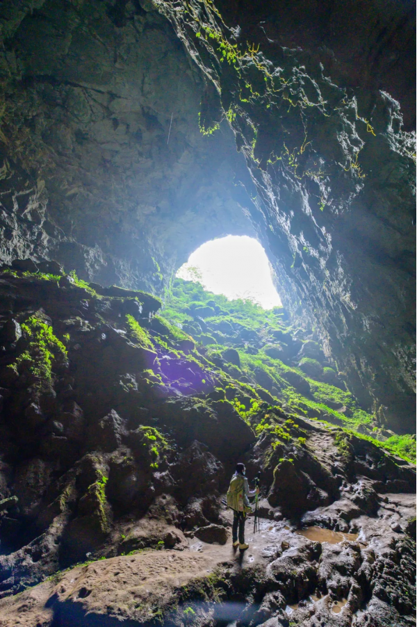 檳榔谷是一個因低調(diào)而被低估的徒步寶藏之地,有著最經(jīng)典的穿越地貌,旱洞連水洞,兩洞連天坑。穿過第一個洞之后,優(yōu)山美地間突現(xiàn)一片水草豐美的鸚鵡洲,徜徉著三三兩兩的牛羊吃著草談著戀愛。沿著溪流徒步在這避世之所,清風歡笑間,能讓人馬上忘記都市繁華與市井煩惱。