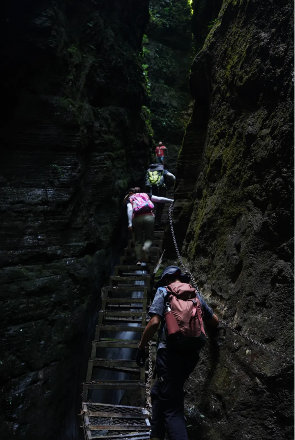 檳榔谷,這里是戶外徒步的天堂,全中國都找不出第二條的戶外路線。神秘的“天使之城”吸引了無數(shù)戶外愛好者結伴而來。檳榔谷是集溶洞、探險、峽谷徒步、攀巖于一體,一次性360°全方位讓你體驗戶外的樂趣,其中800米溶洞探險最為刺激有趣。天使之城有一大型喀斯特溶洞,似天使留下的通城暗道。洞內(nèi)有暗河和數(shù)不清的支洞巷道,石灰質(zhì)溶液凝結而成的石鐘乳、石筍、石花、石幔、石珊瑚遍布其中,最大洞宮可容納千人,因歷代多有人洞中迷失,當?shù)厝朔Q之為迷洞。迷洞暗河河道曲徑通幽,沿著它在黑暗中兜兜轉(zhuǎn)轉(zhuǎn)約800米后,眼前豁然開朗。過了天使之城,沿著崖壁陡坡巖降下切,來到一條狹長地帶的山岳型溪谷,就到了世外桃源 “ 夾兒溝 ” 。我們沿著夾兒溝溯溪而上,或一線天峽、或峰回路轉(zhuǎn)、或暗河涌動,一路醉眼朦朧。萬物皆有裂縫,陽光、空氣和生命之水,使得地縫秘境之處的夾兒溝,演化為生機盎然的,世外桃源!
