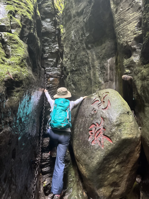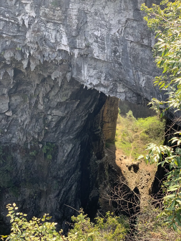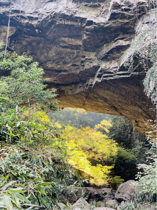 下午我們前往首車鎮(zhèn)豬鼻山徒步,這是一個完全未被開發(fā)的地方,只有當?shù)厝瞬胖溃覀冊谛÷芬宦废滦校患壱徊窖湃说哪_步,踏出的是輪回和歲月。接著便來到今天的徒步精華--天生雙橋,行走于巨石上,腳踩億年前的巨石褶皺,感受自然的鬼斧神工。