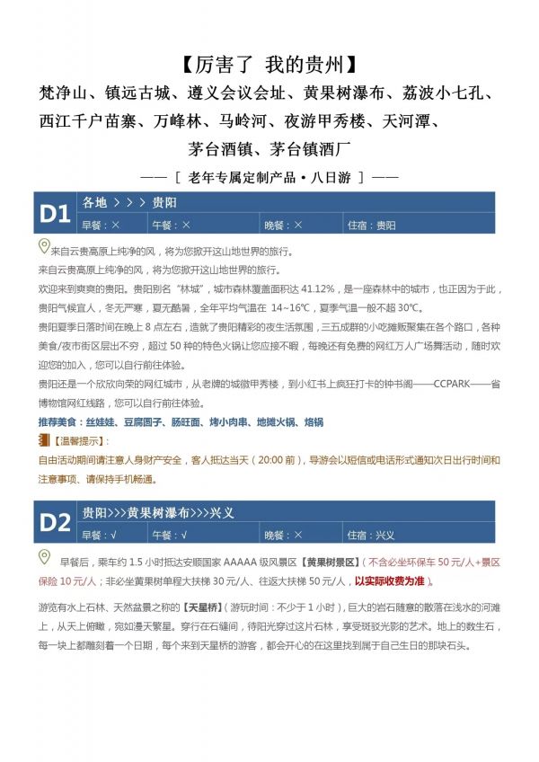 貴州8日游 聊城發(fā)團 純玩 無購物 凈山 鎮(zhèn)遠古城 遵義會議會址 黃果樹瀑布 荔波小七孔 江千戶苗寨 萬峰林 馬嶺河 夜游甲秀樓 天河潭 茅臺酒鎮(zhèn) 茅臺鎮(zhèn)酒廠 發(fā)團時間 20230615-20230622 價格 4480 報名電話 0635 8681234