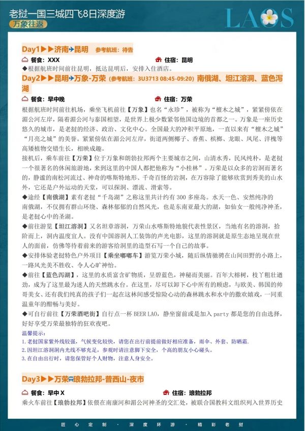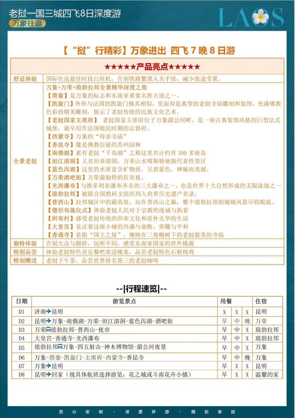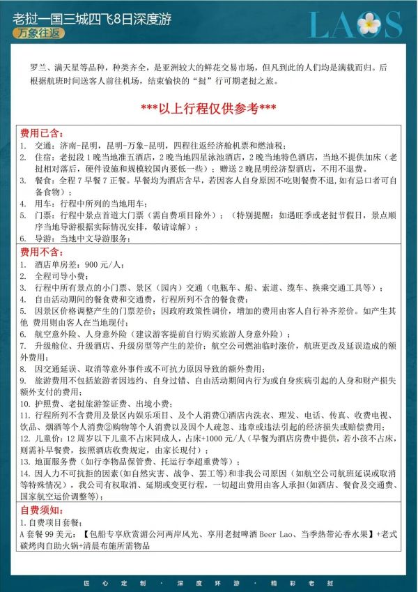 老撾四飛8日游 聊城發(fā)團(tuán) 純玩 無購(gòu)物 大皇宮 光西瀑布 坦江溶洞 藍(lán)色瀉湖 凱旋門 價(jià)格 4380 4680 報(bào)名電話 0635 8681234
