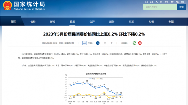 2023年5月份居民消費價格同比上漲0.2% 環(huán)比下降0.2%