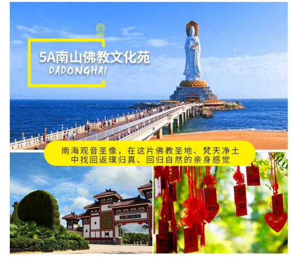 【南山佛教文化苑】(游覽時間不少于120分鐘)5A景區(qū),在108米南海觀音圣像下虔誠祈福,在這片佛教圣地、梵天凈土中找到返璞歸真、回歸自然的親身感覺;