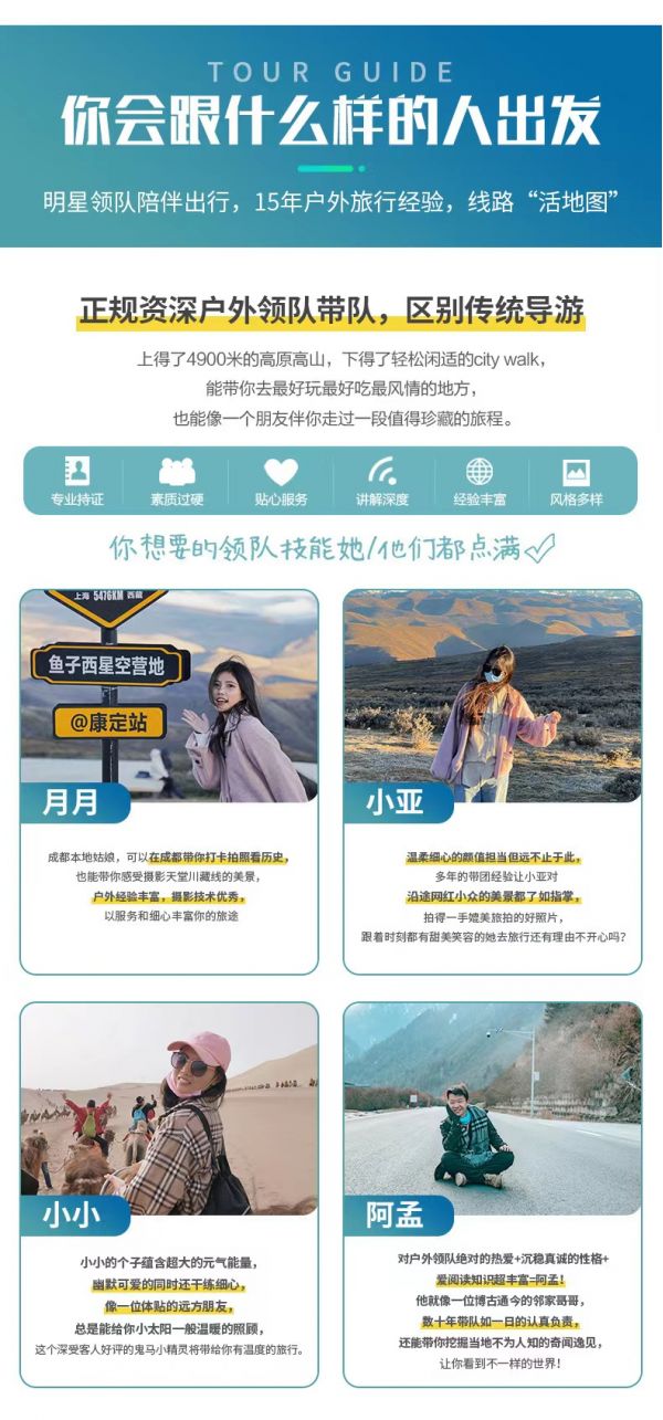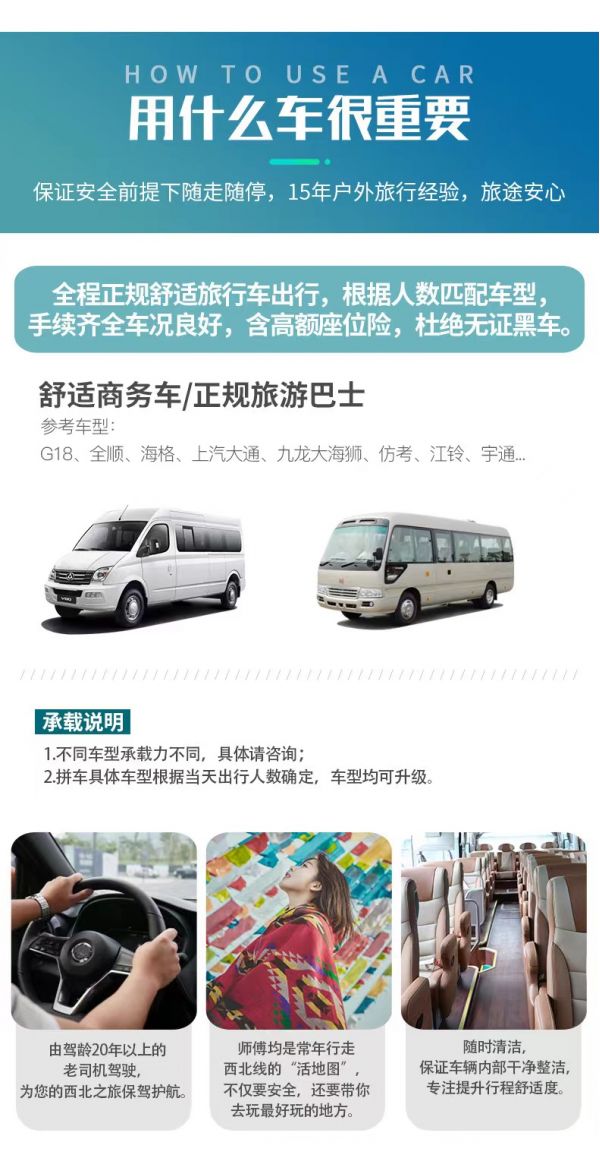 服務:8人以上提供正規(guī)持證專業(yè)戶外領隊服務;8人及以下由經(jīng)驗豐富的司機提供向?qū)Х铡?