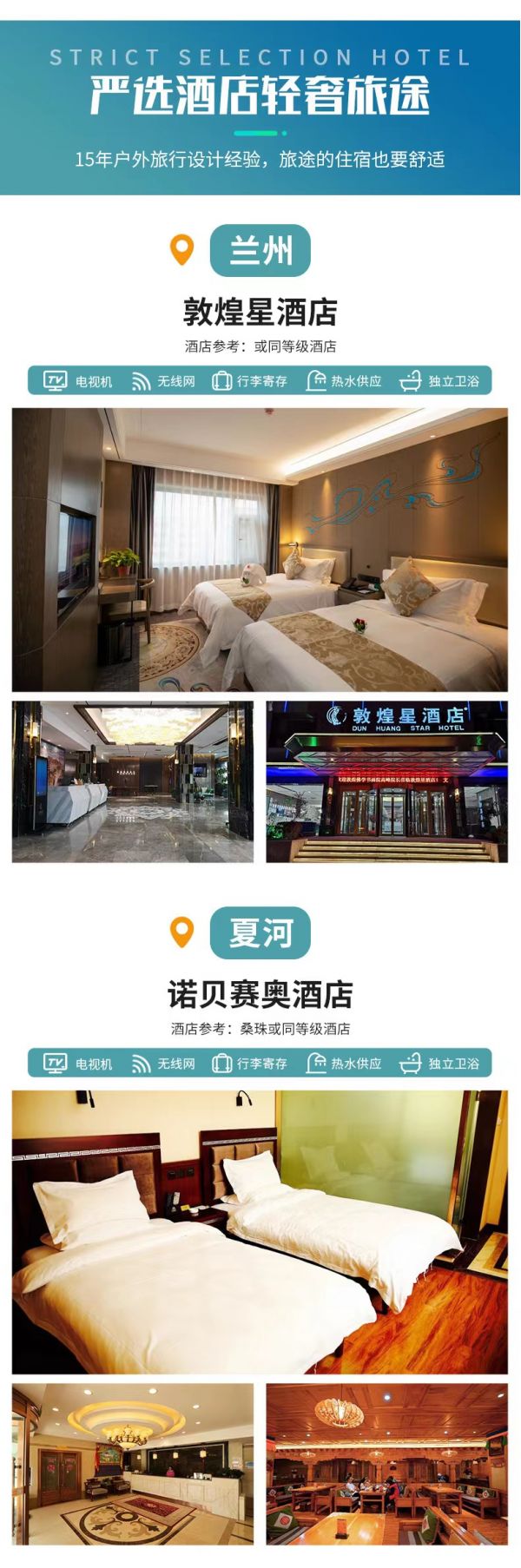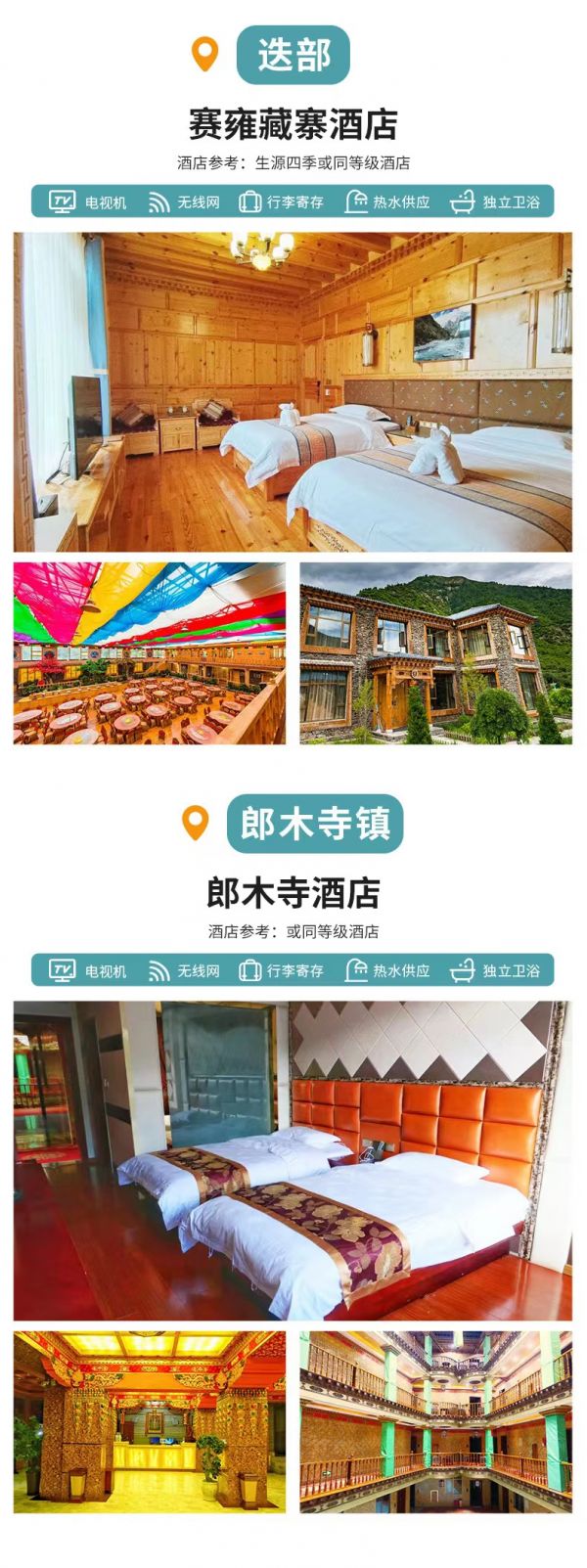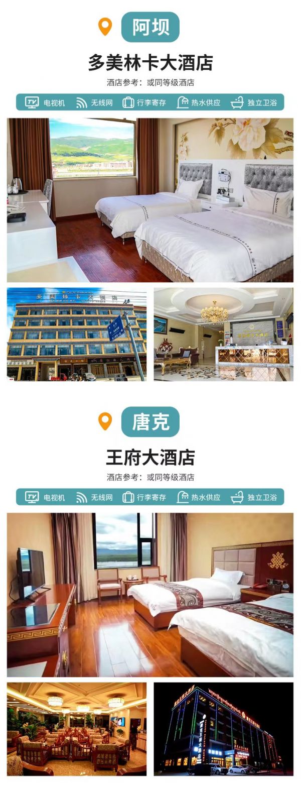 住宿:6晚當?shù)剌p奢酒店,確保酒店干凈衛(wèi)生,溫馨舒適。因沿途高原藏區(qū)條件有限,如果酒店設施沒有達到您的期望,敬請諒解。參考酒店如下: