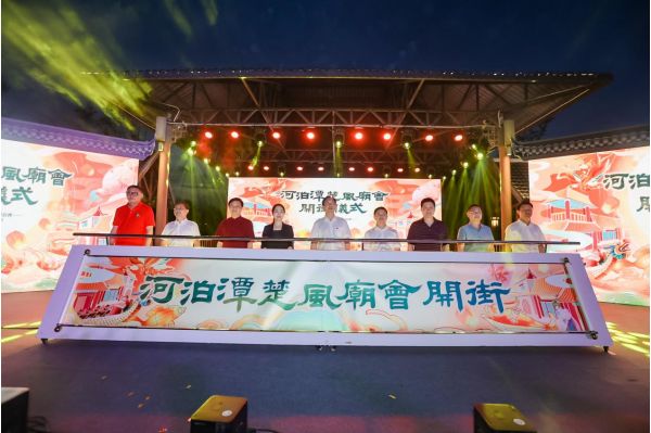 開街儀式以“楚風+晚會”的模式進行,儀式之后,廟會3個小舞臺也陸續(xù)上演精彩節(jié)目。在橘頌廣場的民俗舞臺上,火把舞、上刀山、雜技蹬缸、變臉、柔術(shù)表演輪番上演。在離騷廣場的非遺舞臺,皮影木偶戲驚艷亮相。在華麗精致的畫舫游船上,舞蹈演員伴著古樂翩翩起舞,為游客呈獻了新穎的“水上視覺盛宴”。當晚,主舞臺還有非遺傳承人帶來的茶館評書。