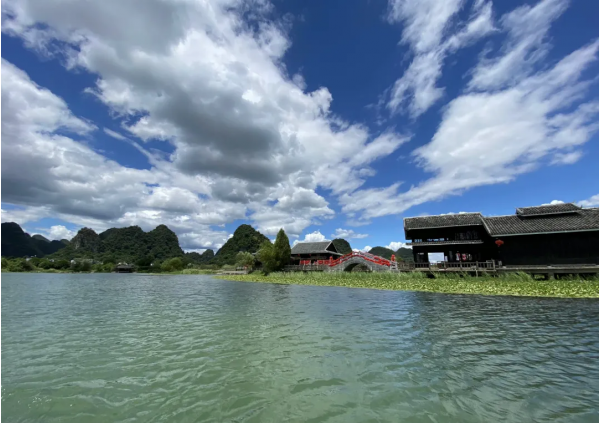 高六米的大型漢白玉劉三姐塑像、碩大的多種石雕繡球、還原當(dāng)年劉三姐與阿牛哥定情誓約的百年古榕、以及風(fēng)雨長廊、壯寨干欄、瑤寨木樓、侗族鼓樓等均全國少見。再現(xiàn)電影《劉三姐》中莫府、阿牛家等場景,經(jīng)典劇場中的“民族歌舞秀”讓您親身領(lǐng)略少數(shù)民族的獨(dú)特風(fēng)情。