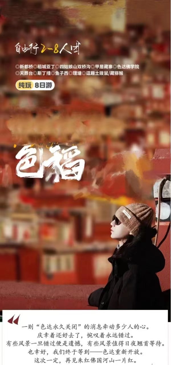 (10)行程中不只色達(dá)一個(gè)景點(diǎn),還有更美好的景點(diǎn)等待大家,預(yù)祝大家旅途愉快!