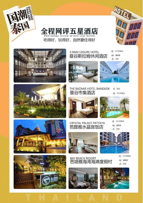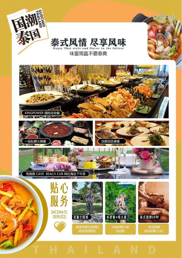 酒店早餐后前往【沙美島samet國家公園自然保護區(qū)】(游玩約4H)位于泰國曼谷東南方的羅永,最吸引人之處在于擁有全泰國最優(yōu)美的沙灘,一年四季均可享受風浪板、浮潛滑水等水上活動,還擁有芭堤雅所沒有的寧靜閑適。去芭堤雅,一定要去沙美島,因為沙美島的確是名副其實的“沙美島”。那黃里透白,面粉一樣細嫩的海沙,鋪成又長又寬的沙毯,為太平洋鑲上了金色的花邊。島上那椰子樹、棕櫚樹等構成的熱帶叢林,像忠誠的衛(wèi)士守護著漂亮的沙灘,也守護著來自世界各地的觀光客和海泳者。沙美島不僅有美麗的熱帶風光和第一流的海泳場,還有那別具特色且價廉物美的熱帶水果和海鮮燒烤品嘗.(島上的付費娛樂活動供游客自主選擇與旅行社無關。)【泰式按摩】(約60分鐘),擁有四千多年歷史,手法涵蓋了按、摸、拉、拽、揉、捏等動作。可以使人快速消除疲勞,還增強關節(jié)韌帶的彈性和活力,促進體液循環(huán)。來到新晉網紅下午茶【cave beach club】(自由活動時間不少于90分鐘),藍天白云下,面朝大海,享受海風,假裝身在夏威夷,芭提雅應該沒有比這里更新更適合打卡的下午茶場所了吧。