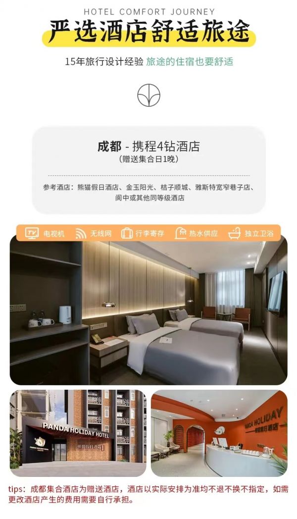 住宿:成都集合日贈(zèng)送攜程4鉆酒店1晚