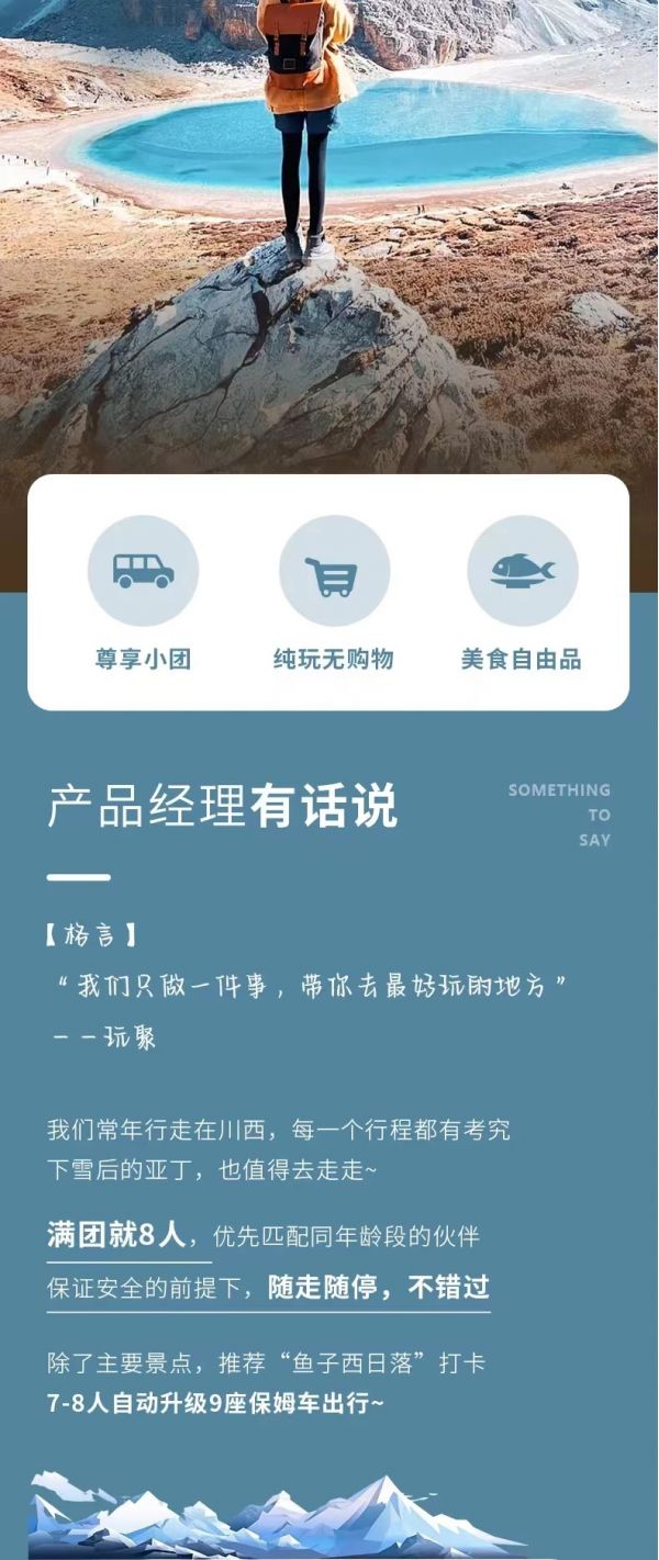 私人訂制:我們業(yè)務(wù)范圍囊括了全國各大城市,川西、西北、新疆、西藏,在路上永遠有我們的身影。我們將為每一個有定制需求的你策劃出獨屬于自己的完美旅行。