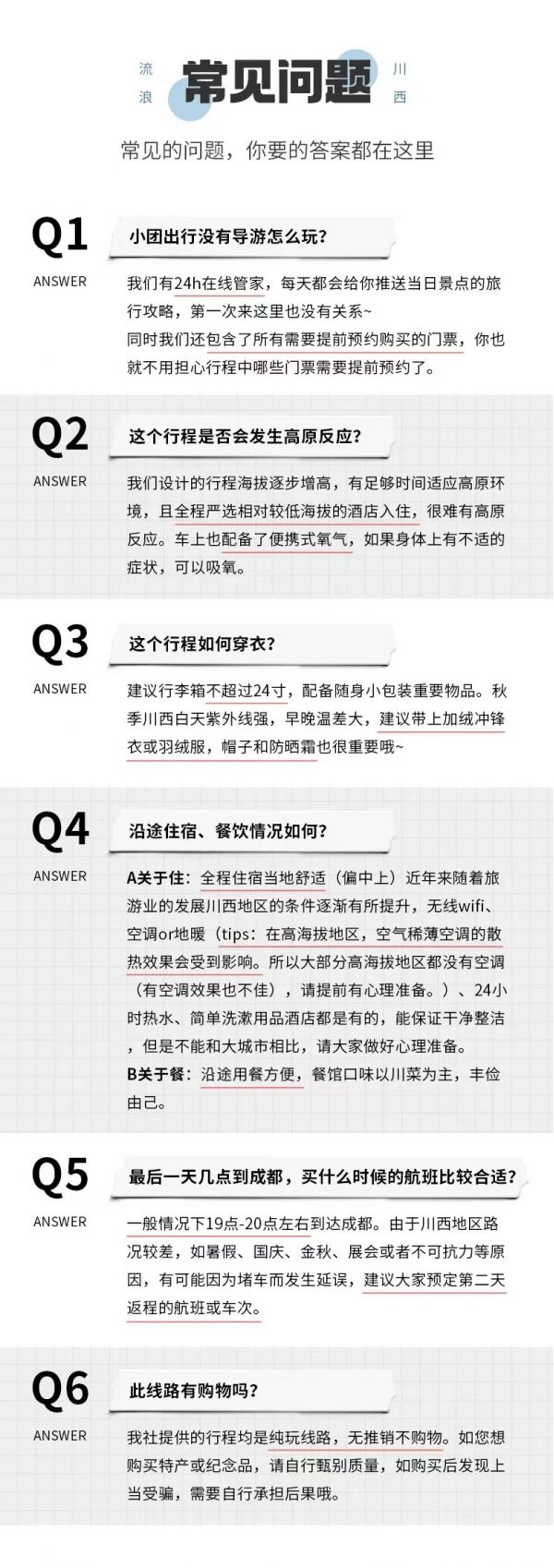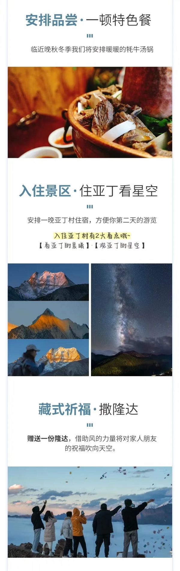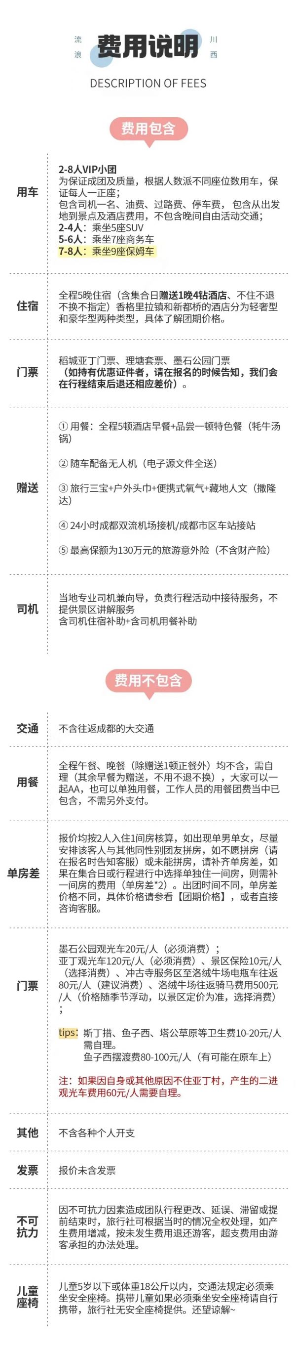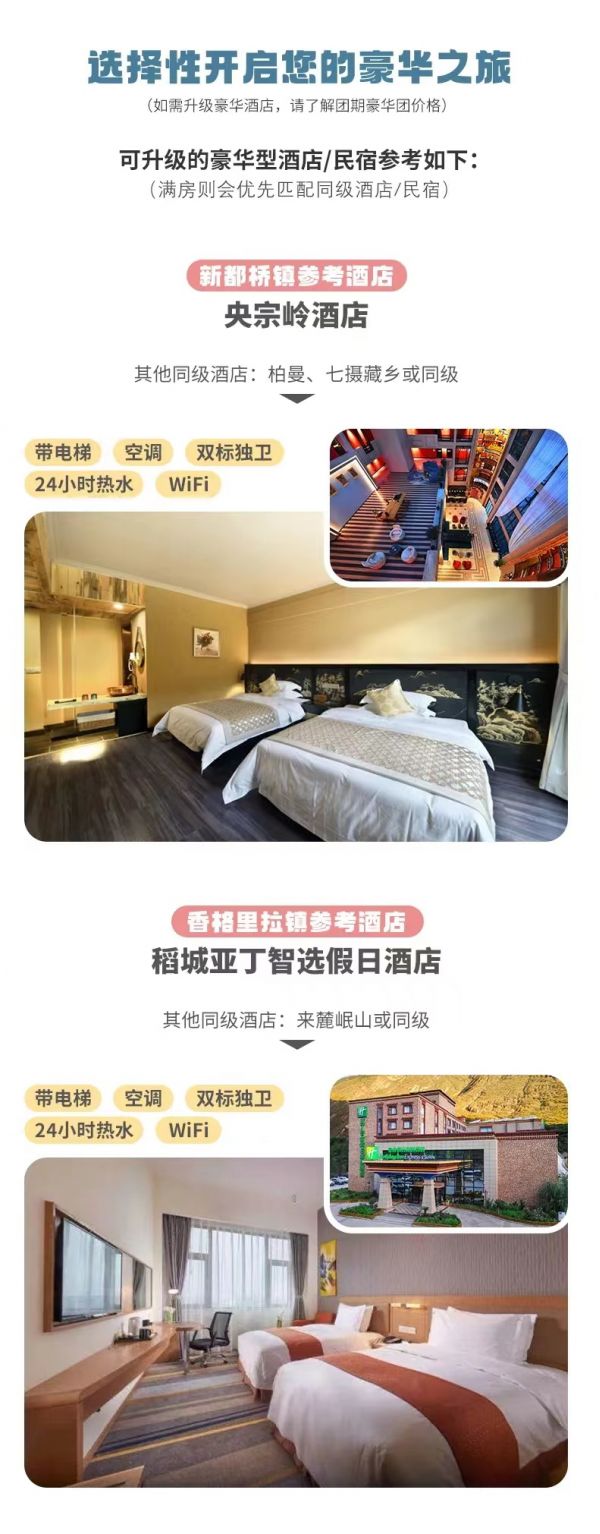 溫馨提示:第一天入住地點默認為新都橋鎮(zhèn),若因交通狀況不允許或者旺季房源緊張,可能會調(diào)整至磨西古鎮(zhèn)入住初到高原,建議緩步行走,適應高原氣候,尊重少數(shù)民族風俗習慣。