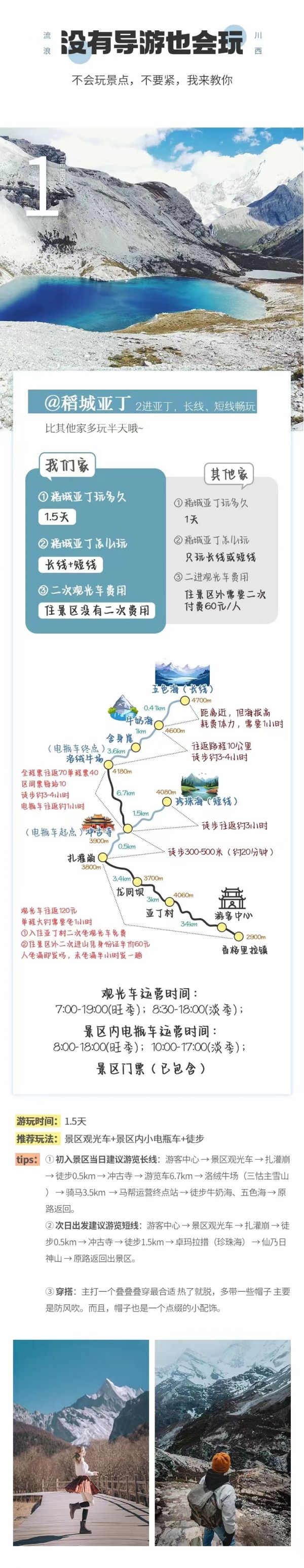 (5)請大家?guī)献蛉沼^光車的票根,今天可繼續(xù)使用;亞丁觀光車末班車時間根據(jù)季節(jié)調(diào)整,請游客把握好游覽時間。