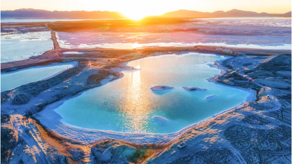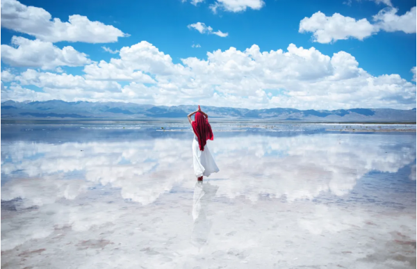 結(jié)晶之上是一層薄薄的鹵水,將天空、云朵和對岸的山都倒映在白色的湖里,非常漂亮,所以也被稱為“中國的天空之境”。可以乘坐景區(qū)內(nèi)的小火車前往景區(qū)深處游玩,如果不乘坐小火車,也可以沿著鐵軌向湖深處散散步拍拍照片也是非常愜意。