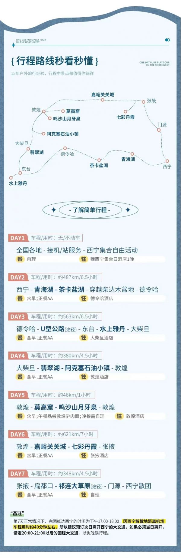 集合時間:以出團通知為準(zhǔn)接機/站服務(wù):本次活動提供西寧市內(nèi)24小時接機/接站服務(wù),工作人員會在您出發(fā)日期前一天21:30之前向您推送消息并與您聯(lián)系,如果超過時間沒有接到任何通知,請及時與報名處聯(lián)系。(接站等待時間一般為15-20分鐘,最長不超30分鐘,節(jié)假日拼單人數(shù)較多情況下客人等待時間可能會延長)。