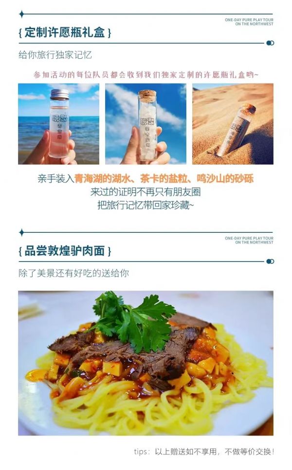 tips:西寧集合酒店為贈送酒店,酒店以實際安排為準(zhǔn)均不退不換不指定,如要更改酒店產(chǎn)生的費用需要自行承擔(dān)。(4)品嘗敦煌驢肉面。