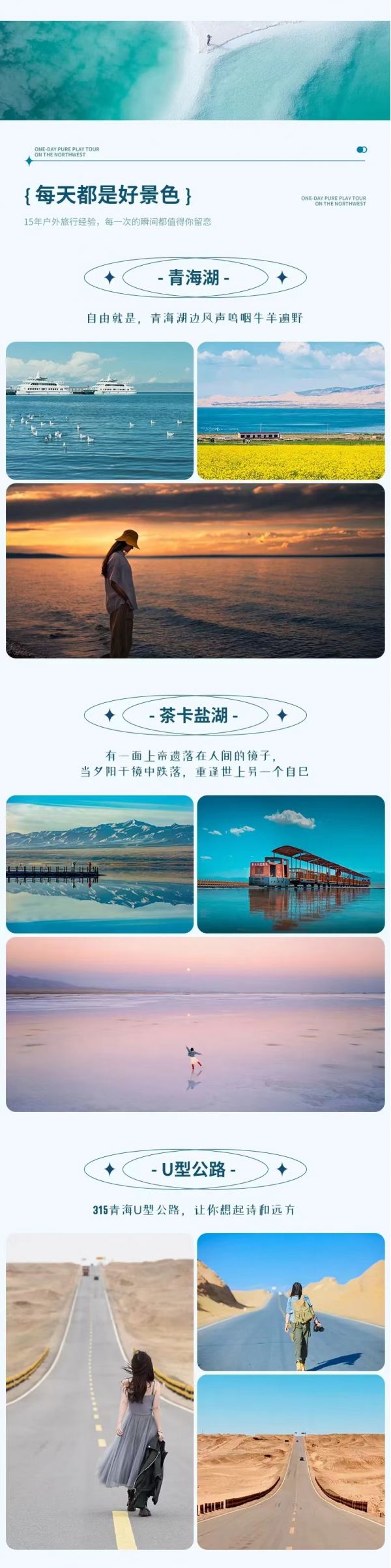 青海湖+茶卡鹽湖+穿越柴達木盆地+U型公路+水上雅丹+大柴旦翡翠湖+阿克塞石油小鎮(zhèn)+莫高窟+鳴沙山月牙泉+嘉峪關(guān)關(guān)城+張掖七彩丹霞+祁連大草原
