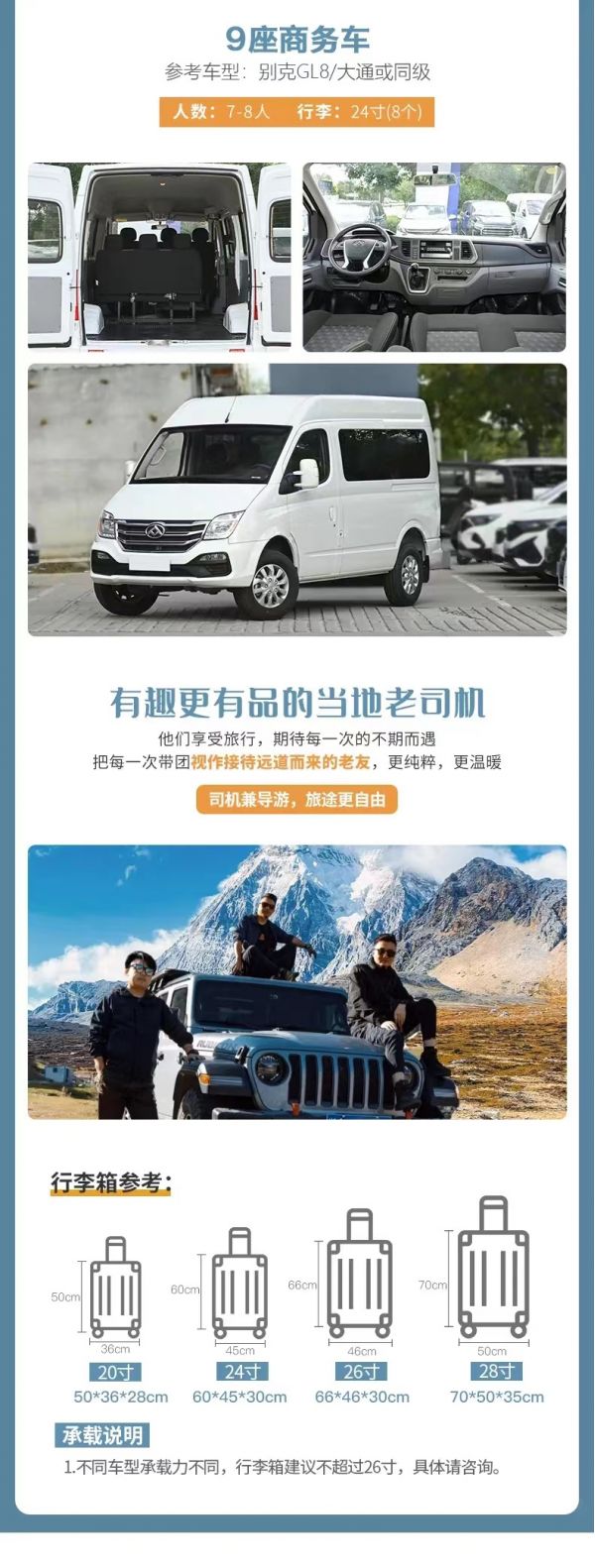 領(lǐng)隊:由經(jīng)驗豐富的司機供向?qū)Х?wù)。(司機不進景區(qū))
