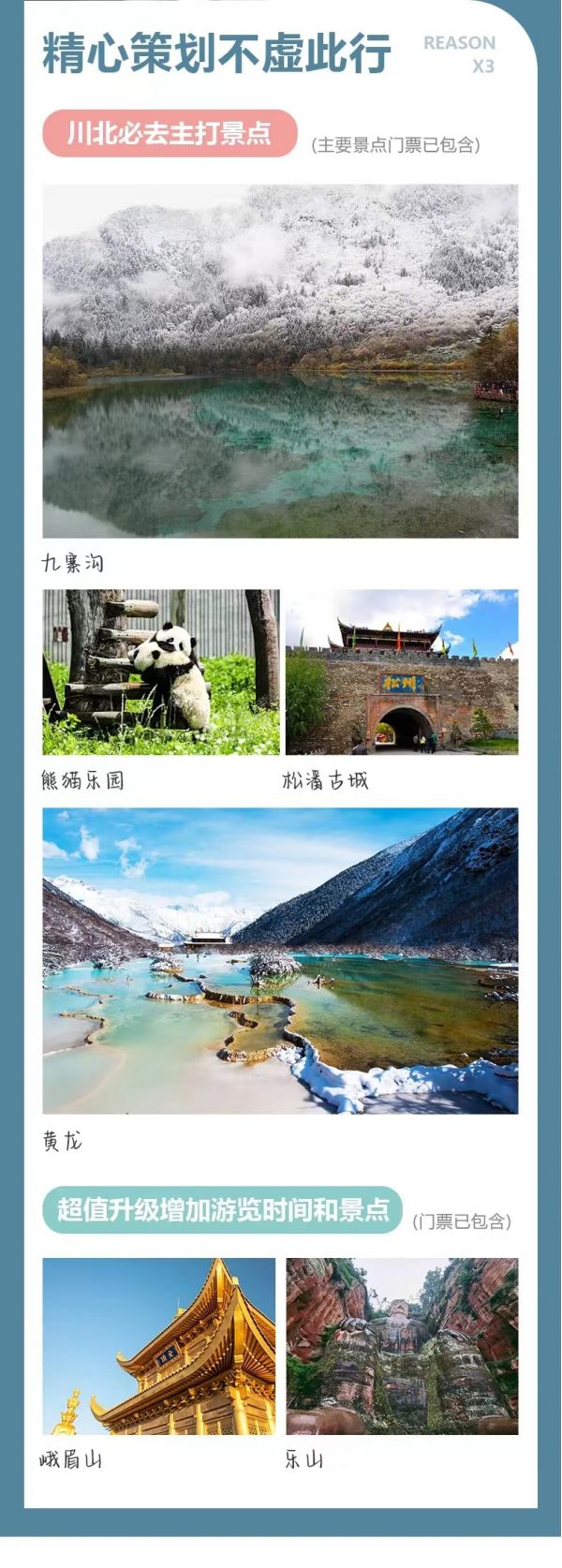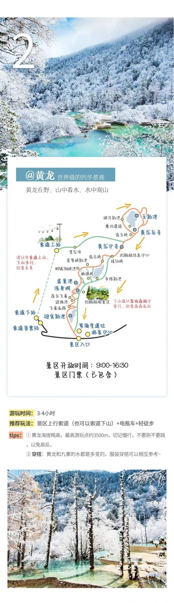 (3)特別提示:12月16日-3月31日期間黃龍索道停運(yùn),屆時(shí)需步行上下游覽黃龍景區(qū),敬請知曉。