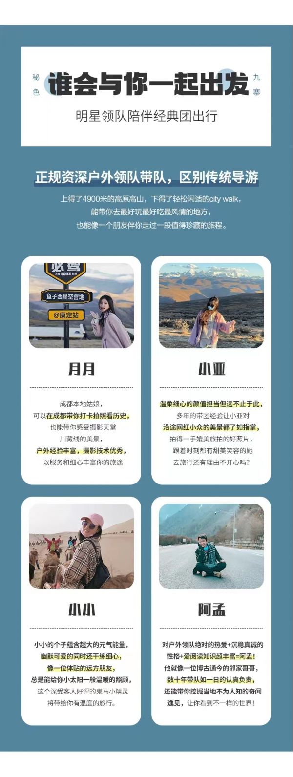 3. 建議隊(duì)員們在集合日抵達(dá)成都后,可在市區(qū)采購一些旅行用品,如零食、佐餐小菜、藥品等;