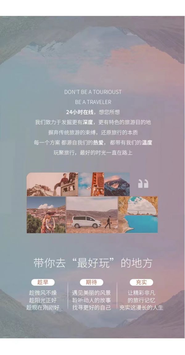 2、 行程中所列景區(qū)游覽時(shí)間,是指游客抵達(dá)景區(qū)門口(含排隊(duì)等待進(jìn)景區(qū)的時(shí)間/乘坐景區(qū)配套索道小交通等在內(nèi))開始計(jì)時(shí);本行程全程標(biāo)注的時(shí)刻均為參考時(shí)刻,具體時(shí)刻以實(shí)際行程發(fā)生為準(zhǔn),謝謝理解!請遵守景區(qū)內(nèi)管理制度,不要在景區(qū)內(nèi)吸煙;