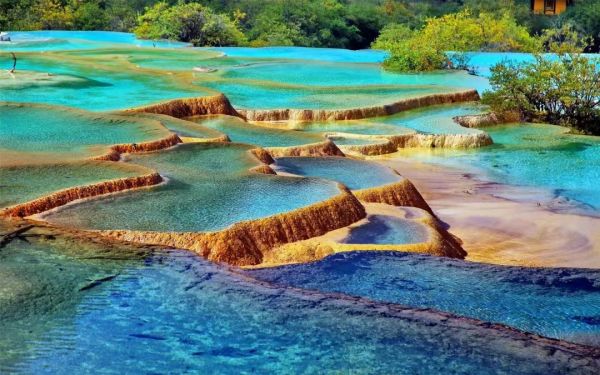 【黃龍風(fēng)景區(qū)】。黃龍風(fēng)景區(qū)擁有獨(dú)特的景觀、原始的生態(tài)和豐富的資源,其鈣化景觀非常壯觀,鈣化邊石壩彩池、鈣化灘、鈣化扇、鈣化湖、鈣化塌陷湖、坑,以及鈣化瀑布、鈣化洞穴、鈣化泉、鈣化臺、鈣化盆景等一應(yīng)俱全,堪稱人間仙境。主景區(qū)黃龍溝位于岷山主峰雪寶頂下,面臨涪江源流,似中國人心目中"龍"的形象,因而歷來被喻為"中華象征"。