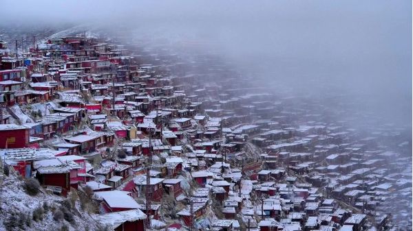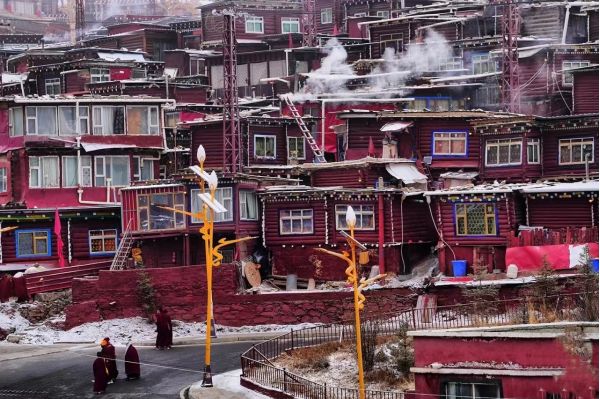 這里沒有嘈雜的人煙只有紅色的經(jīng)舍