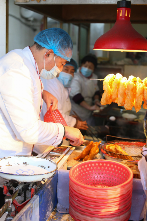 聊城最經(jīng)典的早餐當屬呱嗒,呱嗒的餡分三種,肉餡、雞蛋餡和肉蛋混合餡,還有一種是在制作肉呱嗒半成熟的基礎上,在呱嗒頂端劃一道小口,將攪勻的雞蛋灌入其中的名叫風攪雪的呱嗒,很有詩意的一種呱嗒,整體比前兩種更加厚實飽滿,味道更足一些。
