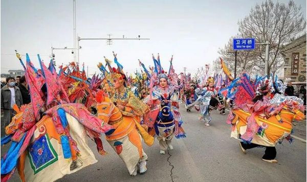 人們?yōu)楸苊饣馂?zāi),以這種方式祭祀火神,表達(dá)了勞動人民一種辟邪除災(zāi)、迎祥納福的美好愿望。“火神廟會”舉辦期間,到處人山人海,傳統(tǒng)節(jié)目有大集街高蹺、軍莊秧歌、背閣、抬閣、八卦秋、武術(shù)表演、竹馬、蓮花燈、火龍、花船等,男女演員盛裝上陣,從臉譜到服裝,無不體現(xiàn)了濃郁的傳統(tǒng)文化色彩。