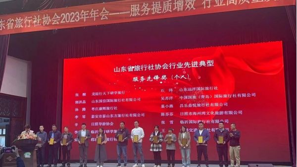 會(huì)上,對(duì)榮獲2023年度山東省旅行社行業(yè)先進(jìn)典型的107家單位和個(gè)人予以表彰,對(duì)山東省“沿著黃河遇見海”旅游線路產(chǎn)品設(shè)計(jì)大賽獲獎(jiǎng)?wù)哂枰宰C書和現(xiàn)金獎(jiǎng)勵(lì)。