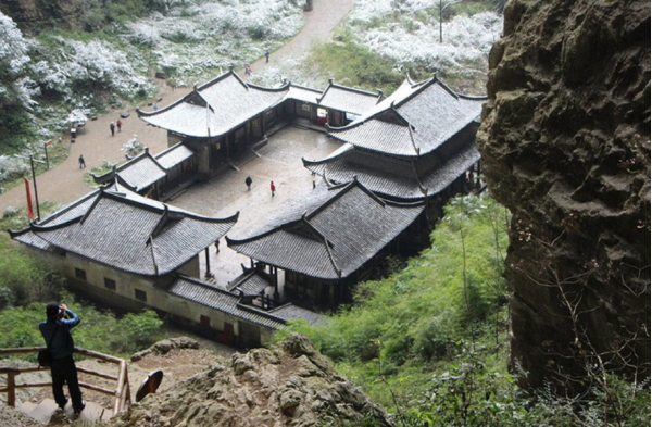 該建筑位于武隆天坑,天生三橋的青龍橋下端,坑底有條谷底大道,寬約5米,仿如古時驛道,可通行木制車和高頭大馬。