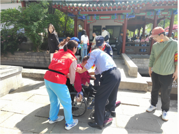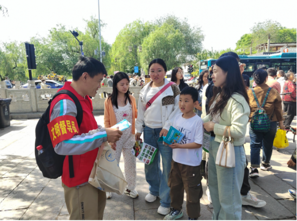 在人流量較大的地點(diǎn),他們主動(dòng)協(xié)助景區(qū)維護(hù)游覽秩序和安全,確保游客們能夠安全有序地游覽。同時(shí),他們還向游客們