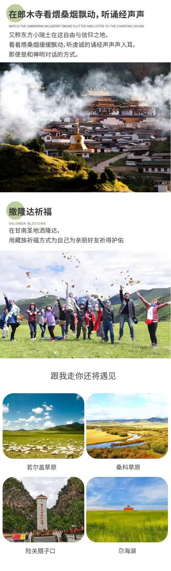即日起甘加秘境門票內(nèi)暫不包含白石崖寺、溶洞,如需要游覽寺院內(nèi)或進溶洞需要另行購票。購買(車票+門票)套票的游客按景交車固定路線游覽,可前往八角古城站、白石崖寺前站,白石秘境觀景臺、路過星空草原到達游客服務(wù)中心,作海寺可自行前往,給廣大游客帶來不便,還望諒解。)