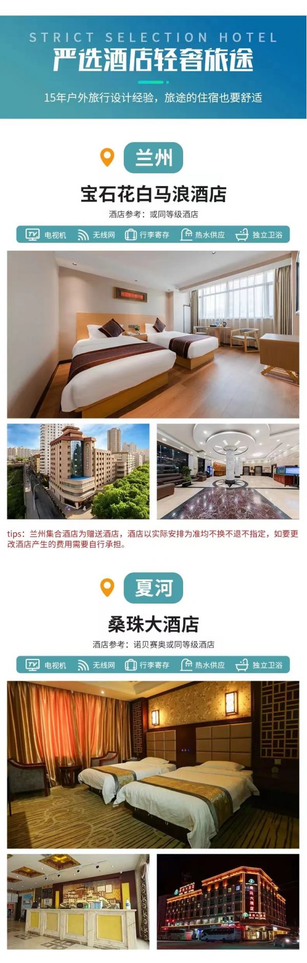 tips:蘭州集合酒店為贈送酒店,酒店以實際安排為準均不換不退不指定,如要更改酒店產(chǎn)生的費用需要自行承擔。
