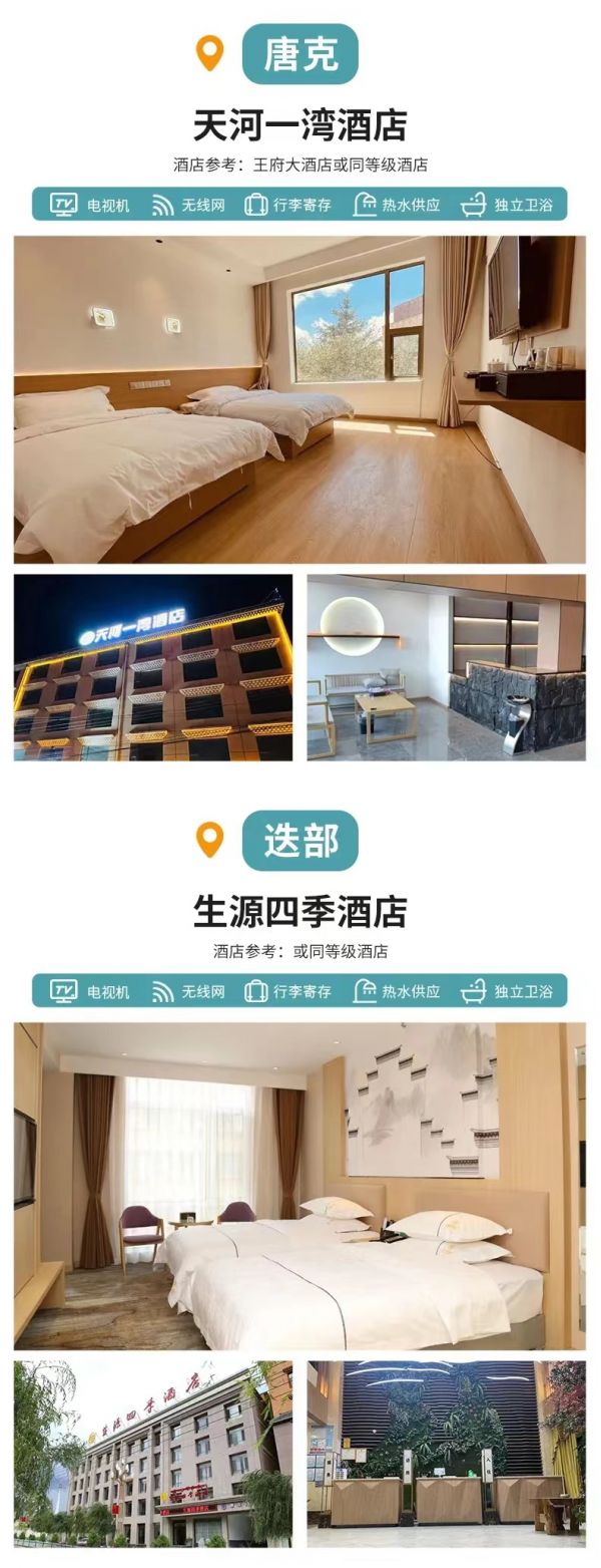 住宿:6晚當?shù)厥孢m酒店,確保酒店干凈衛(wèi)生,溫馨舒適。因沿途高原藏區(qū)條件有限,如果酒店設(shè)施沒有達到您的期望,敬請諒解。參考酒店如下: