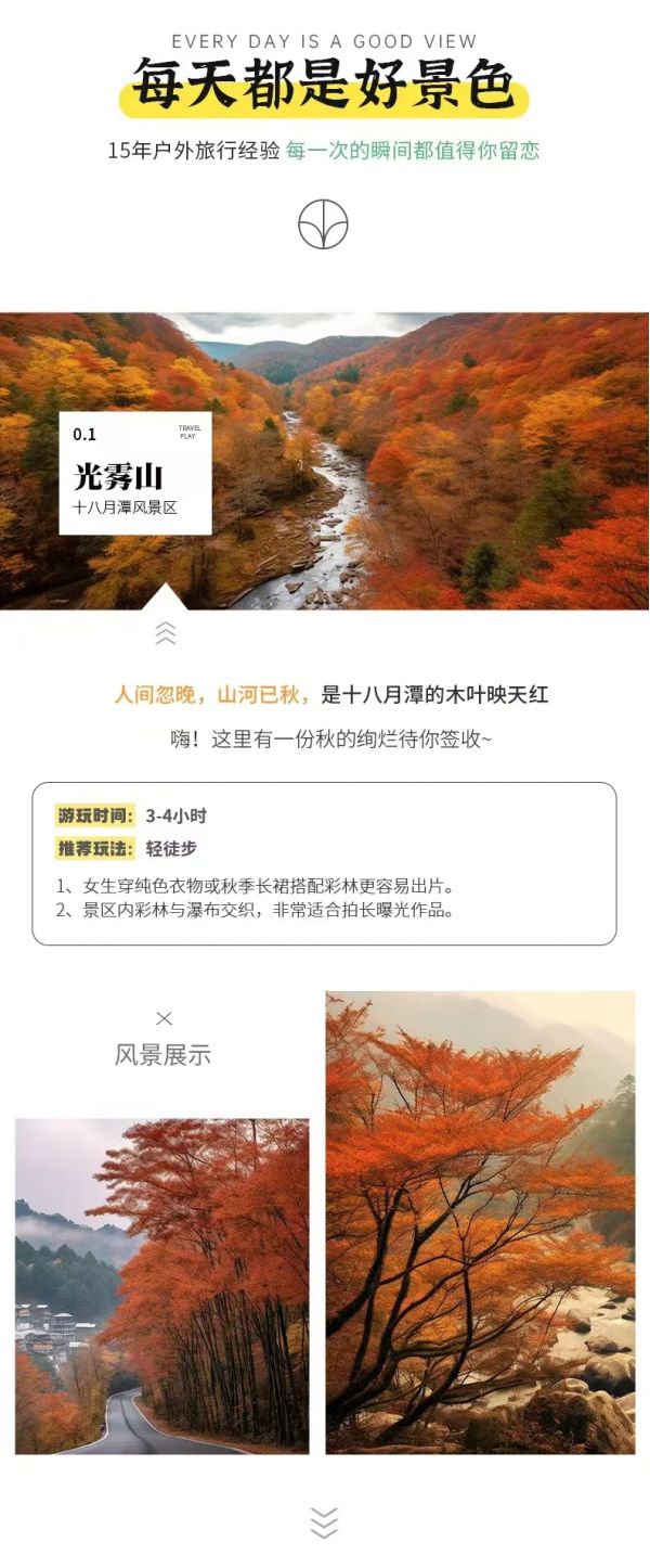 早餐后從從鎮(zhèn)上出發(fā),約15分鐘便可抵達(dá)【米倉(cāng)山國(guó)家森林公園(大壩景區(qū))】,秋天向來(lái)是彩色的,巴中光霧山也漸漸開始展現(xiàn)出它最美的那面,紅葉一日一色,一步一景,紅得風(fēng)韻特別,紅得多姿多彩,紅出了“丹楓爛漫錦裝城,要與春花斗眼明”的奇妙佳境,毫不夸張的說(shuō)光霧山的秋天就是我心中的Top1。
