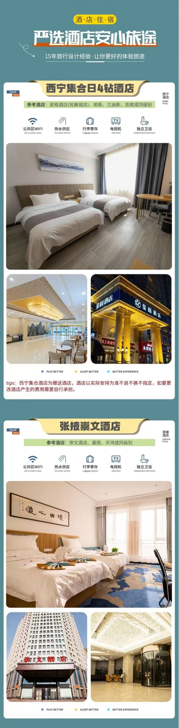tips:西寧集合酒店為贈(zèng)送酒店,酒店以實(shí)際安排為準(zhǔn)均不退不換不指定,如要更改酒店產(chǎn)生的費(fèi)用需要自行承擔(dān)。