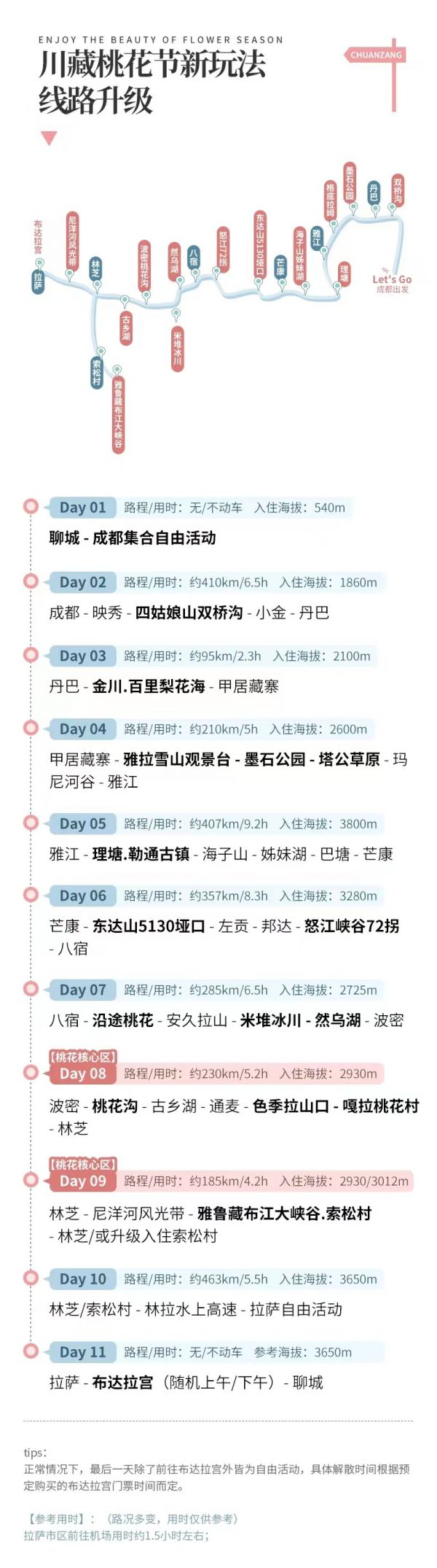 海拔說明:1860m—3060m—3500m—3730m—4200m—2530m