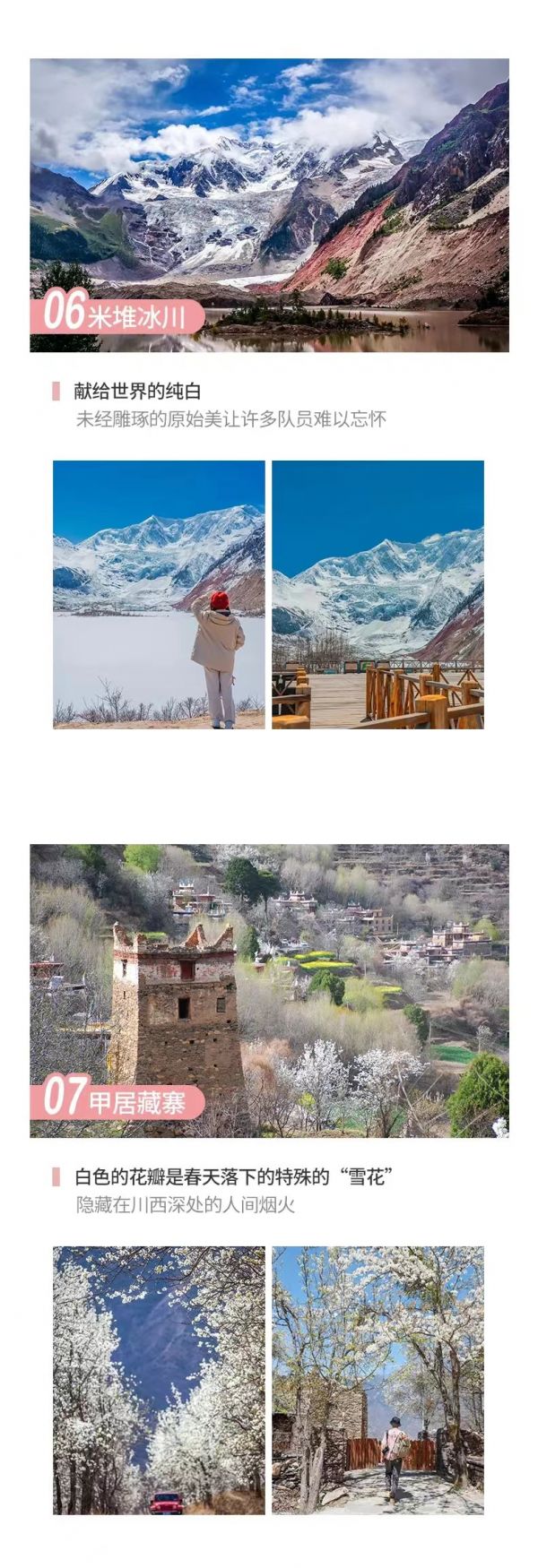 先前往觀景臺(tái),觀賞和拍攝【金川河谷】百里梨花的壯觀景象。金川素有“中國(guó)雪梨之鄉(xiāng)”的美譽(yù),無論河壩沃土還是半山坡地,漫山遍野都栽種梨樹,每到仲春三月,萬畝梨海,百里白蕊,整個(gè)金川河谷似茫茫雪海。待拍攝結(jié)束后,沿大金川河向丹巴方向前進(jìn),沿途觀賞大渡河谷兩岸藏寨掩映在花海中的美景,這一帶是丹巴嘉絨藏族文化的起源地之一,人文景觀也頗多,可盡情游覽拍攝。