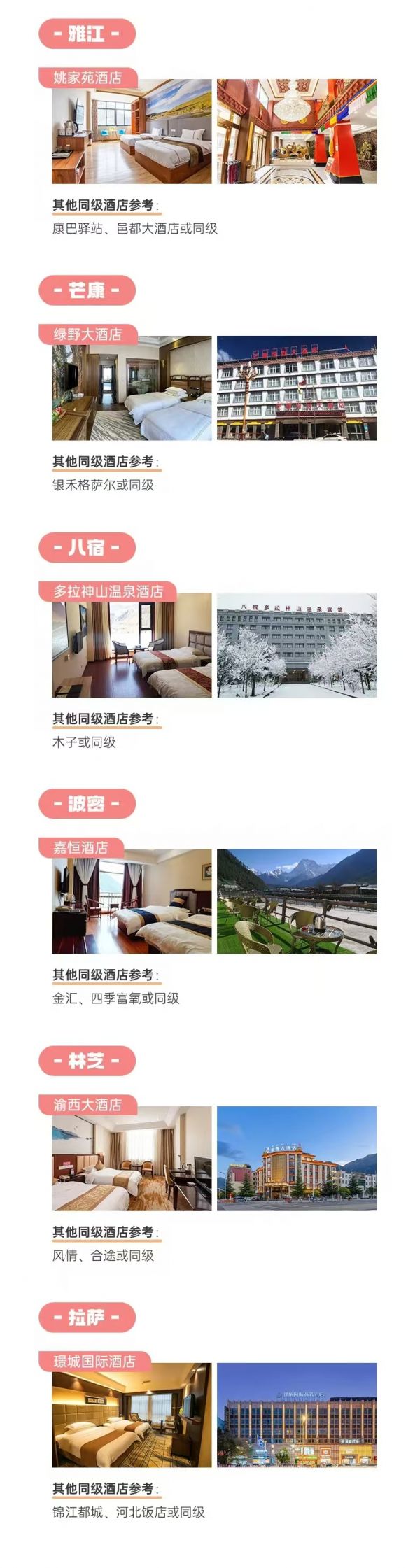 ? 用餐:含酒店早餐,午餐魯朗石鍋雞,晚餐需自理